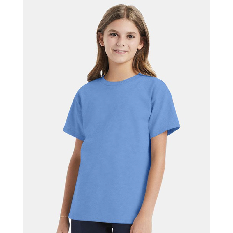 100% cotton, 22 singles. Pre-shrunk. Classic fit. Set-in 1x1 ribbed crewneck. Self-fabric neck tape for comfort. Double-needle sleeves and bottom hem. Quarter turned body. CPSIA tracking label compliant. Tear away label. Apparel colors and sizes may be assorted in any breakdown. Pricing includes your one-color, onelocation imprint. Quotes for additional imprint colors, decoration locations, or embroidery are available upon request. Contact us for reduced pricing on higher volume quantities. Set Up: $38