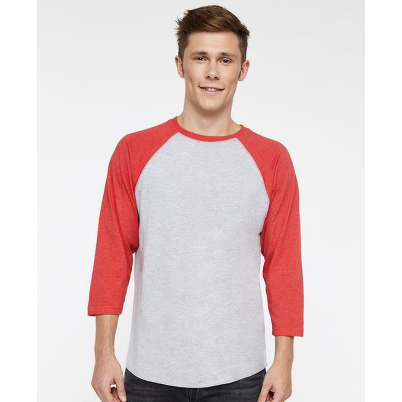 100% combed ring-spun cotton, 30 singles. Flatlock stitched ribbed collar and raglan armholes. Side seams. Contrast double-needle stitched sleeves. Easy-moving three-quarter length raglan sleeves. Raw-serged shirttail hem. EasyTear label. Apparel colors and sizes may be assorted in any breakdown. Pricing includes your one-color, one-location imprint. Quotes for additional imprint colors, decoration locations, or embroidery are available upon request. Contact us for reduced pricing on higher volume quantities. Set Up: $38