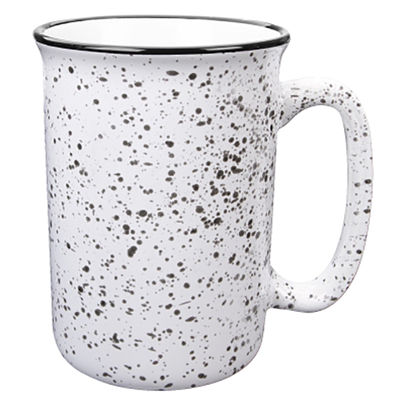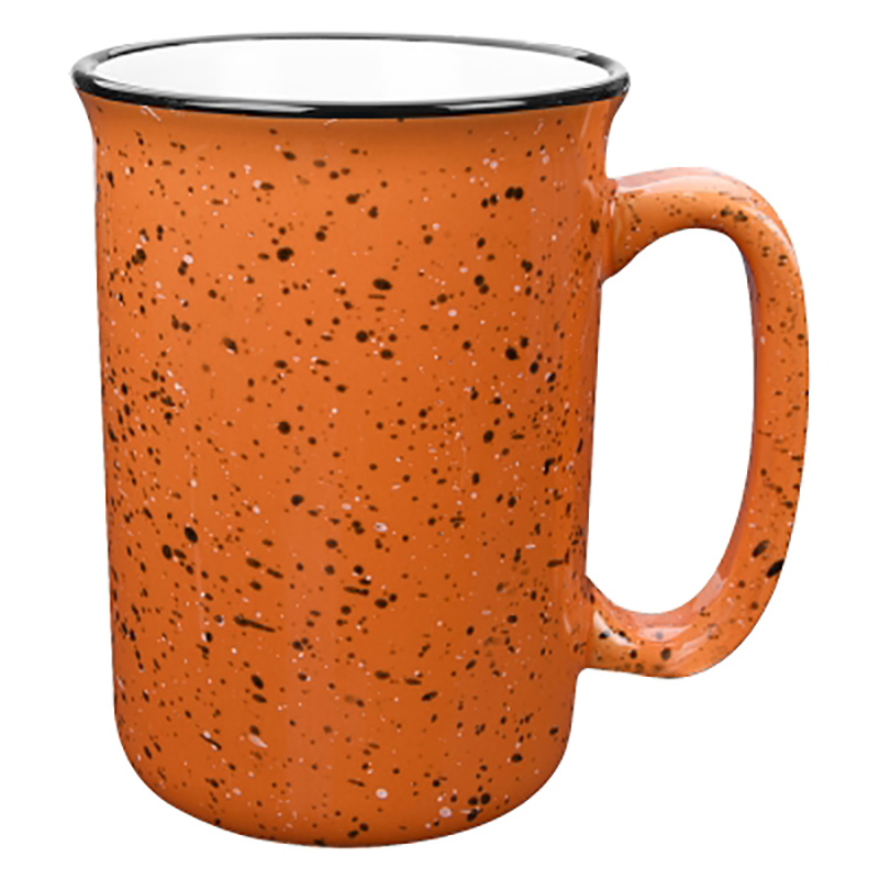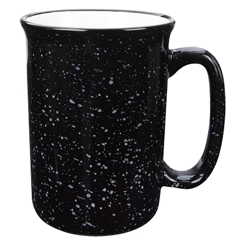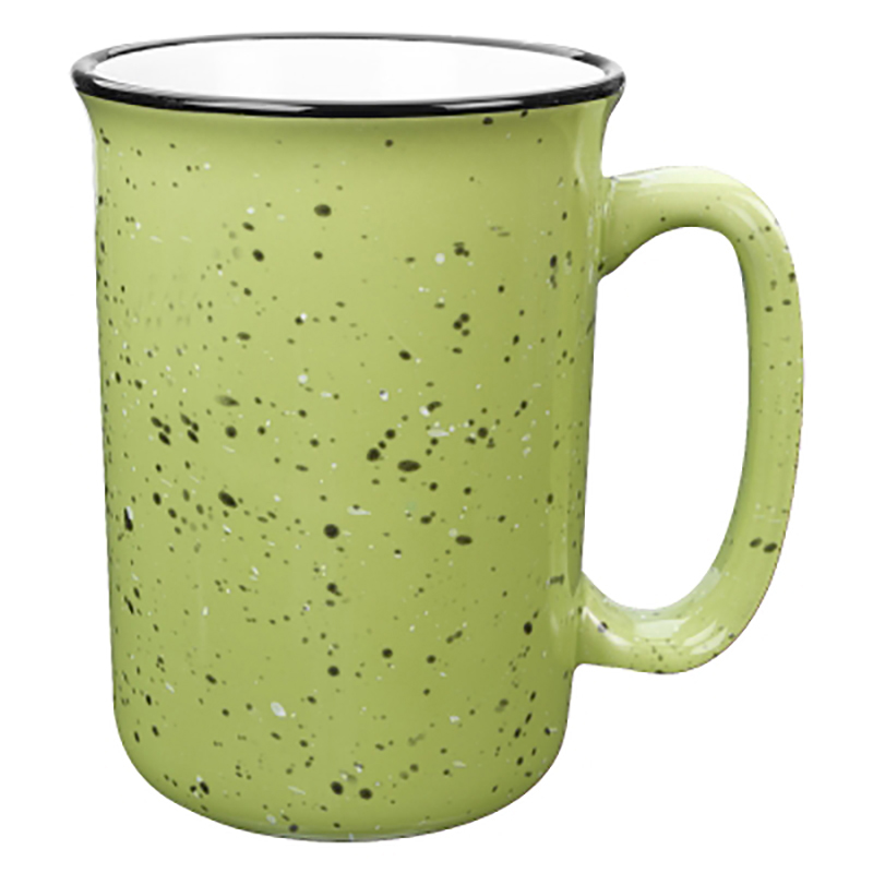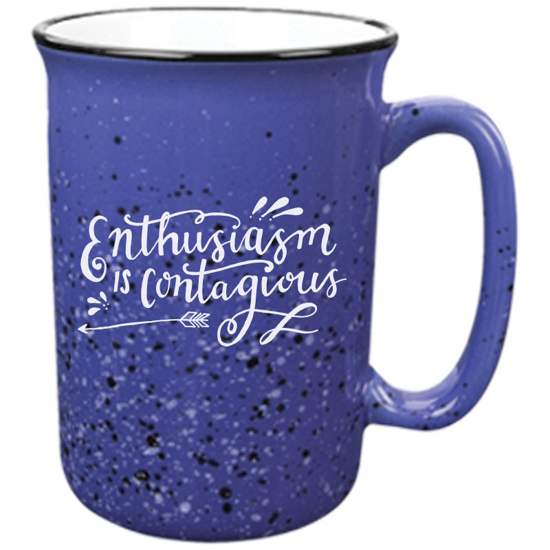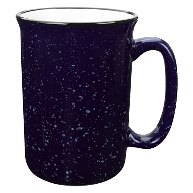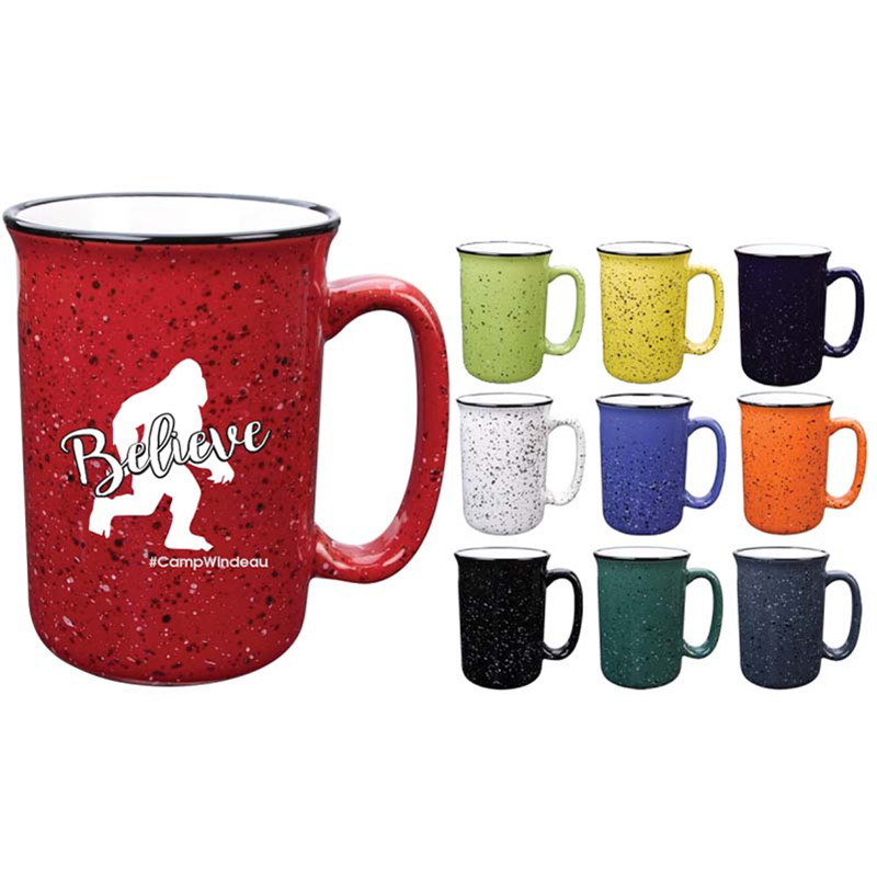 Just look at those color options! Look at that price! Elongated shape for a refreshing new twist, roomy, comfortable handle. Retro campfire mug look! Size: 14 oz. Average shipping .90 per piece. Colors may be assorted every 36 pcs. Maximum imprint area 4" x 2". Set Up: $36