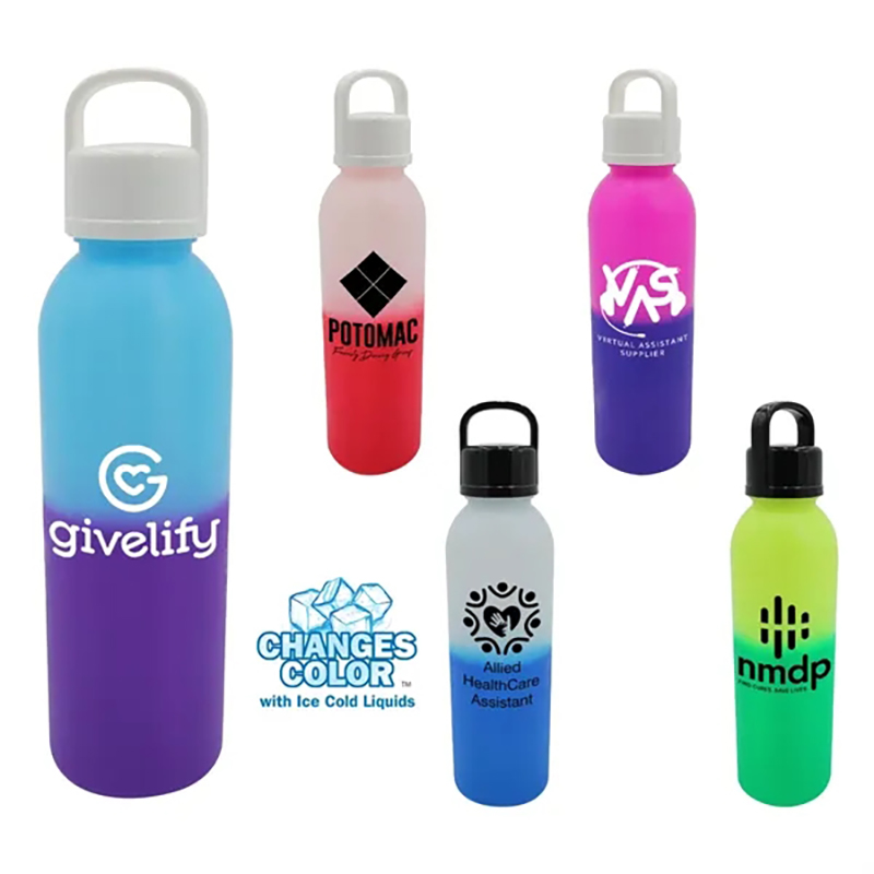 *NEW* Changes color with ice cold liquids. Handle lid for convenient carrying. top shelf dishwasher safe. Bpa free. Size: 10.75“ x 2.75“. Average shipping .70 per piece. Colors may be assorted every 125 pcs. Maximum imprint area 1.75” x 5.5”. Set Up: $48