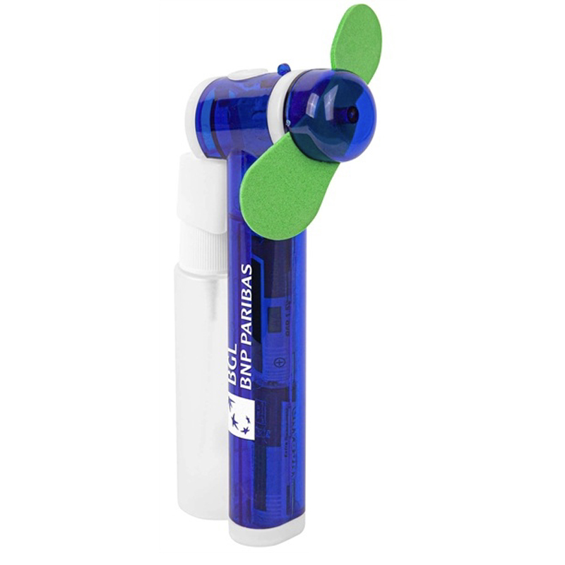 *NEW* Seek and easy to carry design, and has an refillable internal reservoir that holds two ounces of water providing approximately 300 sprays. The EVA blades are soft to the touch but provide a great breeze. Includes two AA batteries for operation. Size: 2.25" x 6" Average shipping .30 per piece. Maximum imprint area 2" x .5" Set Up: $48