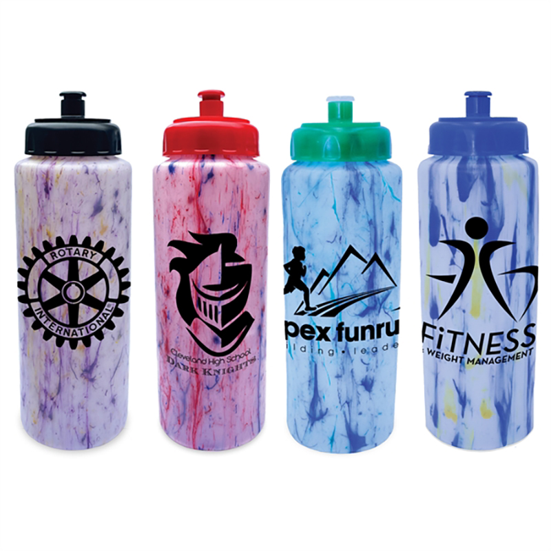 BPA free. Wide mouth opening. Large imprint area. Top shelf dishwasher safe. Confetti pattern is different on each bottle. Flip top, straw, and straw cap lids also available. Size: 9 9/16“. Average shipping 1.59 per piece. Colors may be assorted every 100 pcs. Maximum imprint area 4” x 6”. Set Up: $48