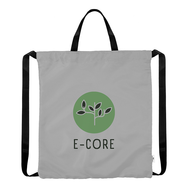 *NEW* Made of 230D RPET recycled plastic bottle polyester with PU backing. Drawstring closure. Can be carried as a tote bag or worn as a drawstring backpack. Size: 15“ x 16“. Average shipping .31 per piece. Colors may be assorted every 25 pcs. Maximum imprint area 10” x 10”. Set Up: $46