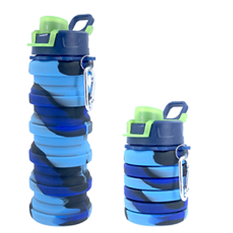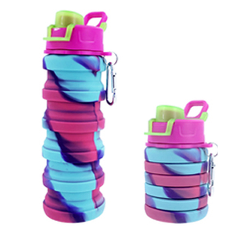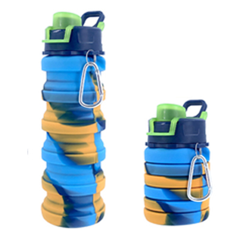 Collapsible BPA free silicone. Wide mouth for easy cleaning. Detachable lid with covered sport sipper. Size: 16.9 oz. Average shipping 1.00 per piece. Colors may be assorted every 50 pcs. Maximum imprint area 1” x 0.3”. Set Up: $48