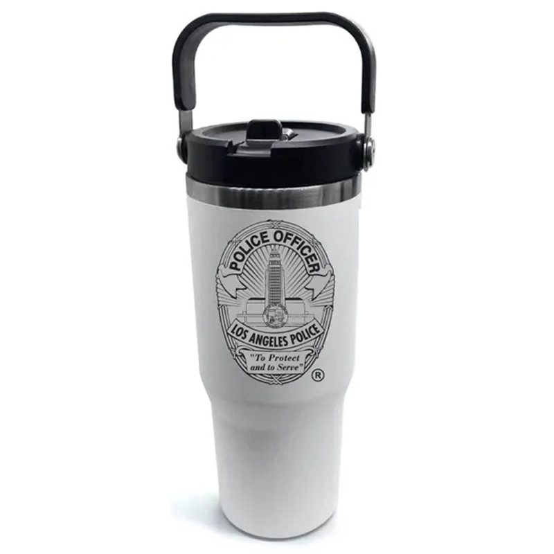 *NEW* Double wall insulated tumbler keeps drinks hot or cold up to 8 hours. Screw-on lid with flip-to-drink straw and carry loop. Fits car cup holders. Large 2.5"Wx3"H imprint area on a matte color coating lets your message stand out sharp. Your friends and customers will love this tumbler with your advertising messages. Great for any occasions. Hand wash only. 1 color 1 location. Size: 32 oz. Average shipping 2.50 per piece. Colors may be assorted every 24 pcs. Maximum imprint area 2.5” x 3”. Set Up: $38