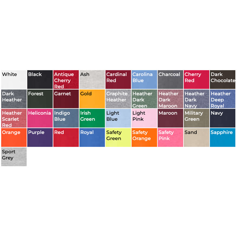 Made of 8.0 oz., 50% cotton / 50% polyester. Features double-needle stitched collar, shoulders, armholes, cuffs and waistband, 1x1 athletic rib knit collar, cuffs and waistband, with spandex. Average shipping 1.50 per piece. Colors and sizes may be assorted in any breakdown. Set Up: $38