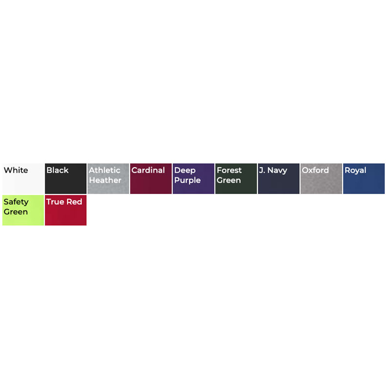 5.6 oz. Shoulder-to-shoulder tape; double-needle coverstitched front neck. Set-in sleeves. Rib cuffs with concealed seams. Seamless body for a wide printing area. Double-needle stitched hemmed bottom; seamless 1x1 rib collar. Average shipping .85 per piece. Colors and sizes may be assorted in any breakdown. Set Up: 38.00