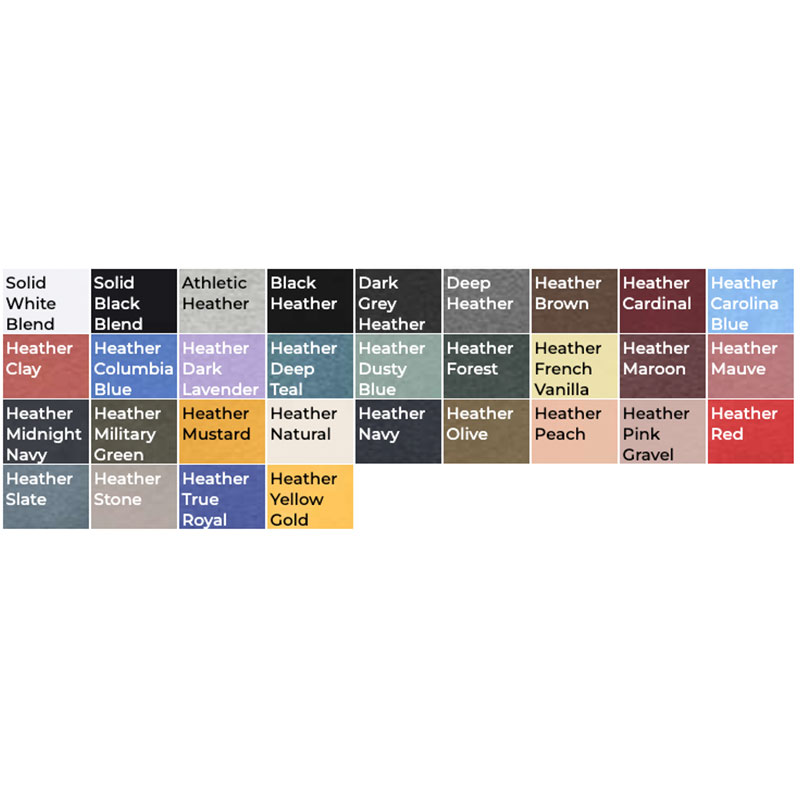 BELLA + CANVAS Heather CVC Long Sleeve Tee ul)4.2 oz./yd2, 52/48 airlume combed and ringspun cotton/polyester, 32 singles. Athletic Heather & Black Heather are 90/10 airlume combed and ringspun cotton/polyester. Retail fit. Unisex sizing. 2" ribbed cuffs. Coverstitched collar. Side seams. Tear away label. Average shipping .85 per piece. Colors and sizes may be assorted in any breakdown. Set Up: 38.00