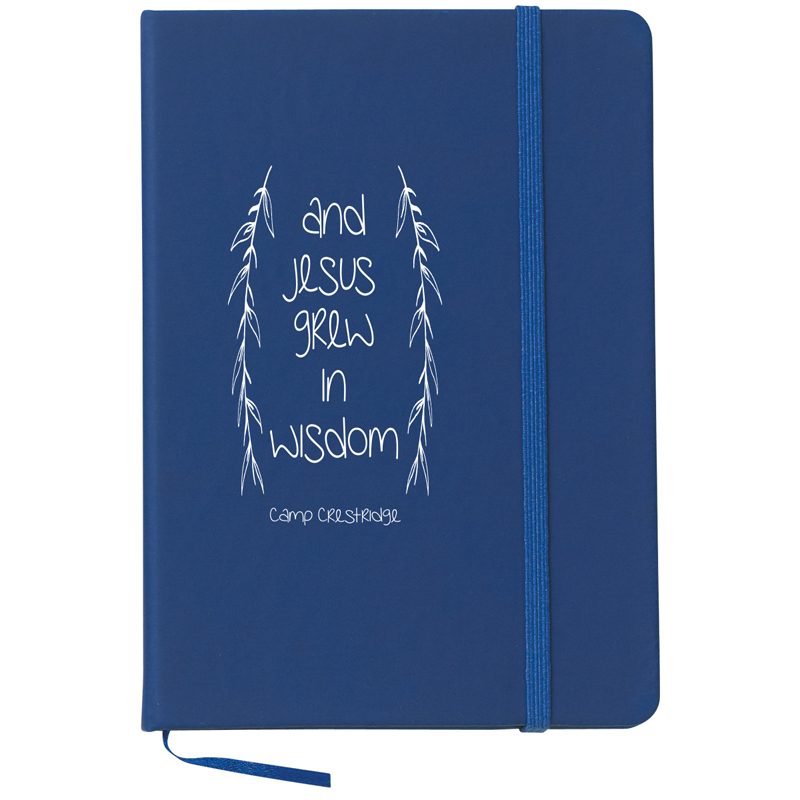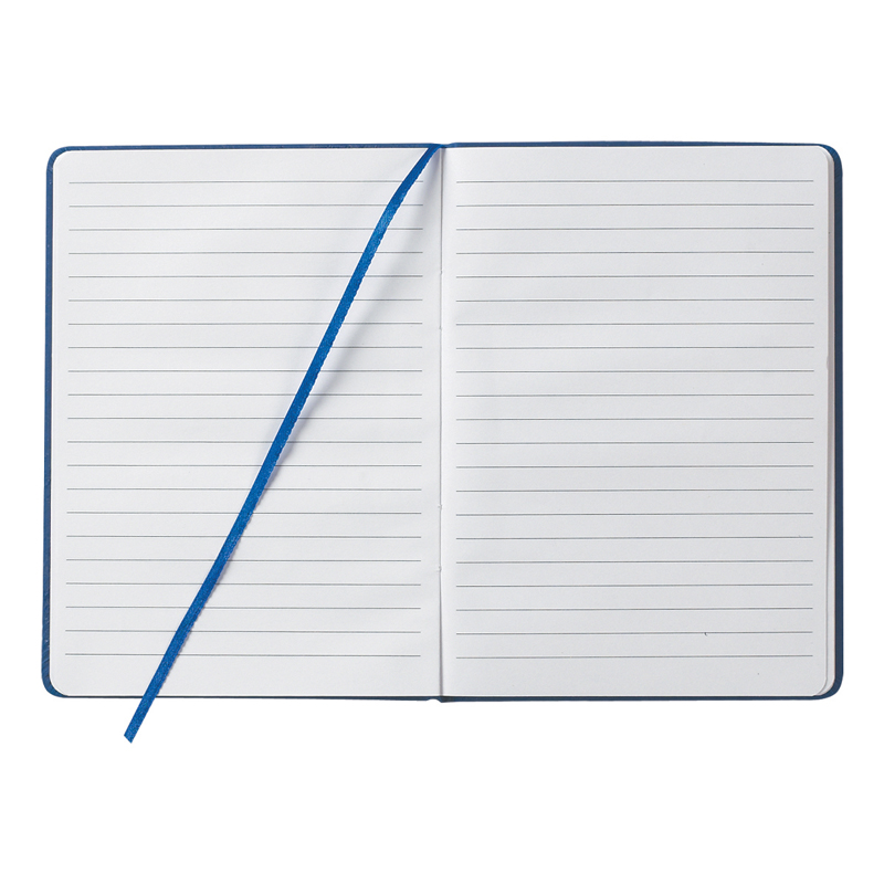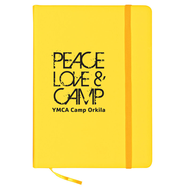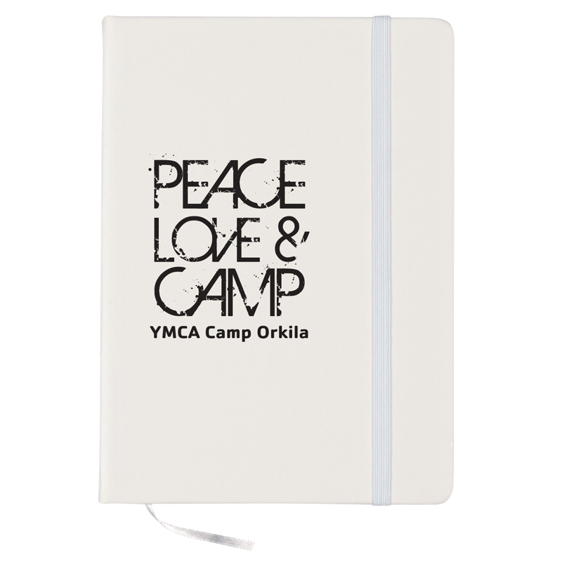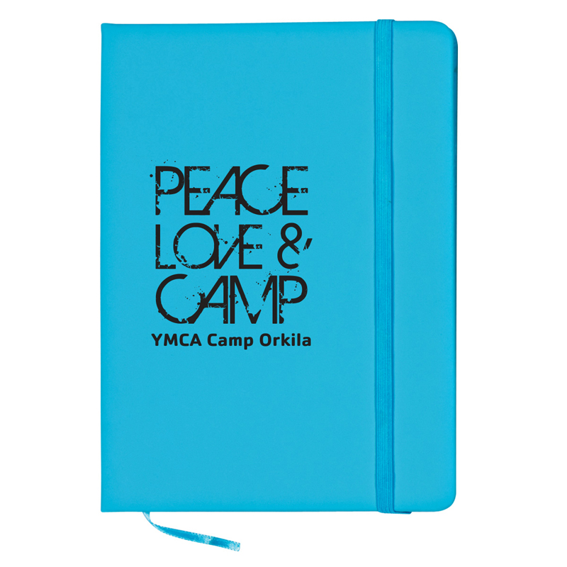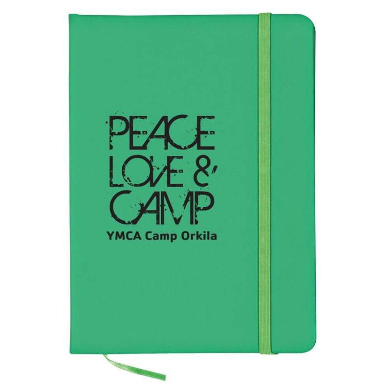 *BEST SELLER* Beautiful faux leather bound book with soft, vividly colored cover and matching ribbon bookmark and elastic closure. Roomy comfortable size, 80 lined pages, keepsake for a lifetime. Full color imprint available. Size: 5" x 7". Average shipping .60 per piece. Colors may be assorted every 50 pcs. Maximum imprint area 3" x 5". Set Up: $38