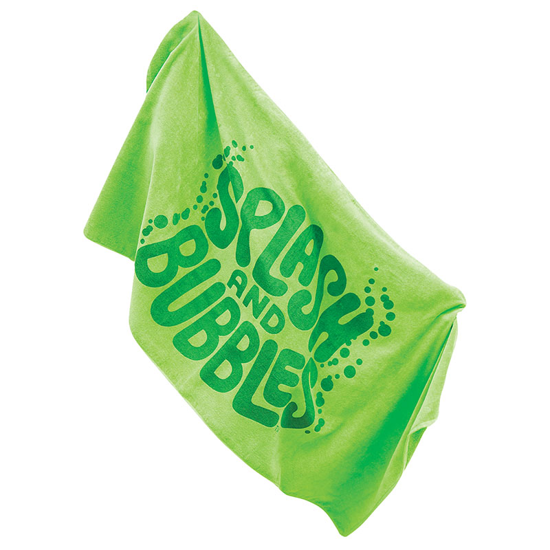 Hemmed 100% ring spun cotton loop terry towel. Large imprint area for tone on tone or black screenprint. Promotional weight is perfect for quick drying and easy toting. Personalization, 9.00 ea addl. Embroidery 2.50 ea addl. Size: 30" x 60". Average shipping .80 per piece. Maximum imprint area 26" x 48". Set Up: $48