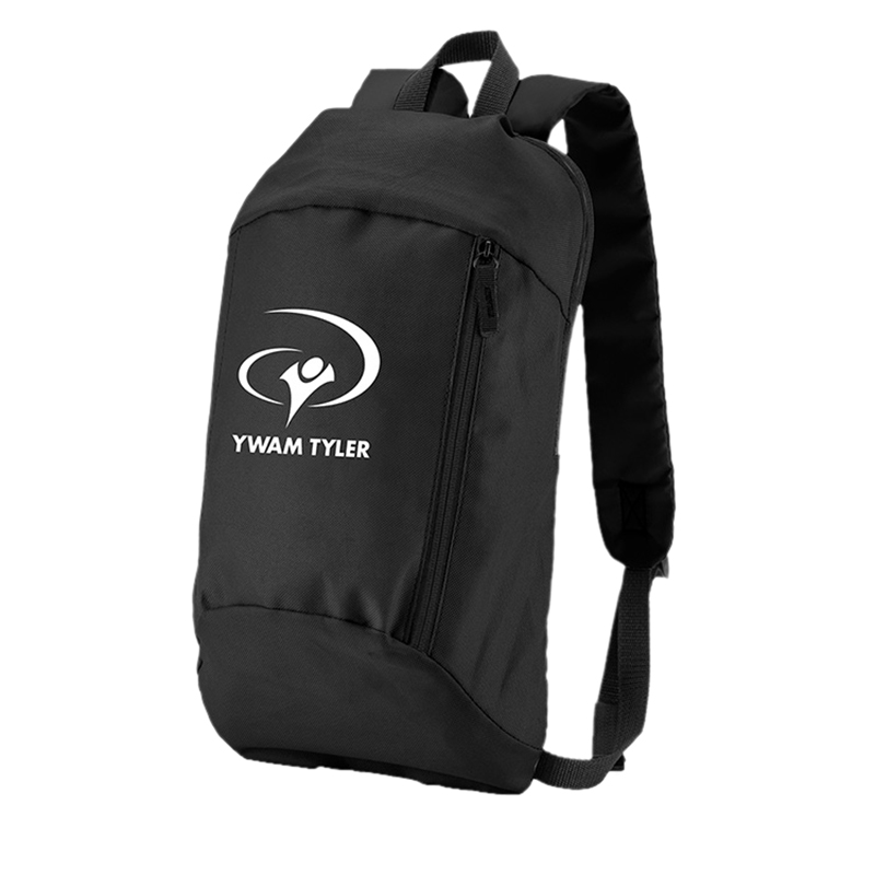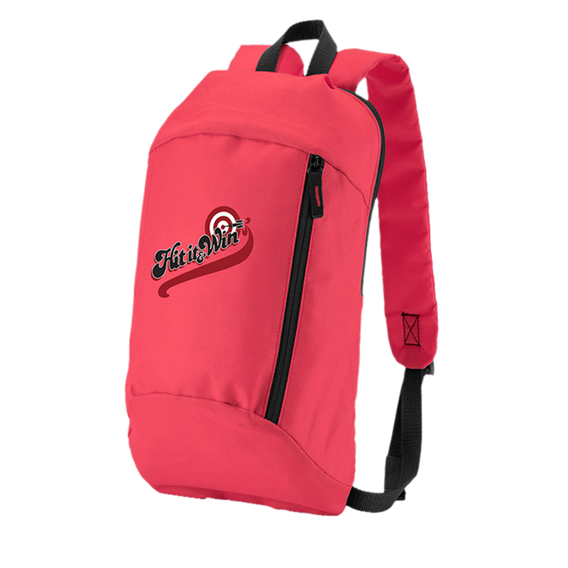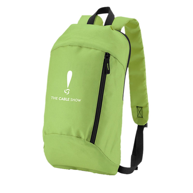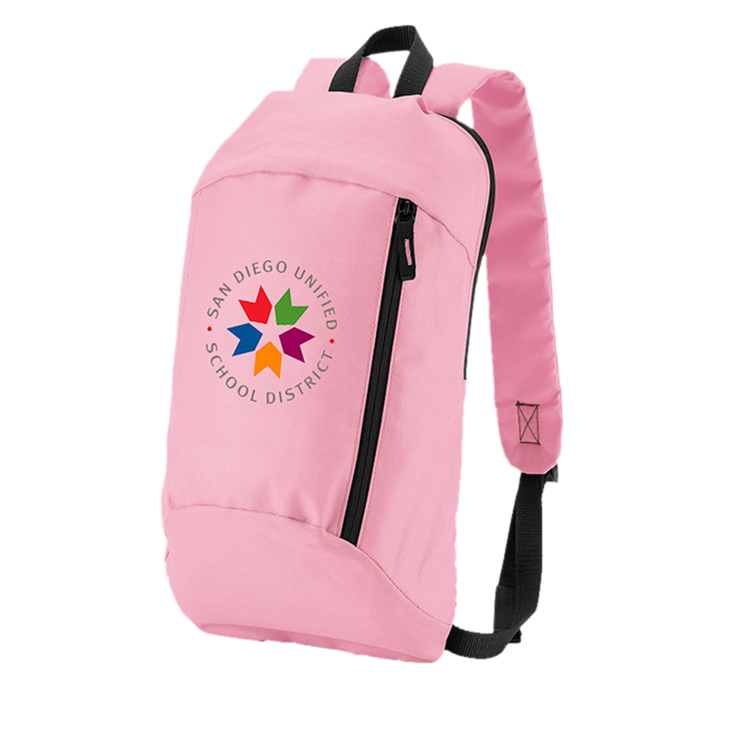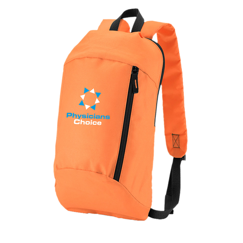 Lightweight but very strong non woven, 600D/210D material. Lightly padded back, front zippered pocket, roomy main compartment, adjustable shoulder straps and a top grab handle. Size: 9.5" x 15.75". Average shipping .50 per piece. Colors may be assorted every 25 pcs. Maximum imprint area 4" x 5". Set Up: $48