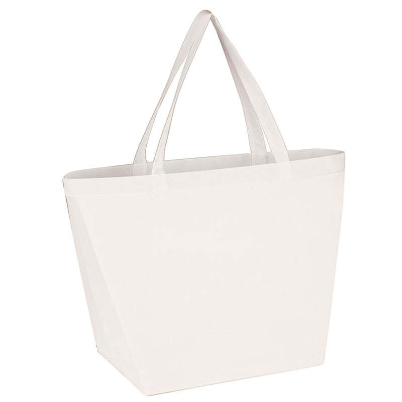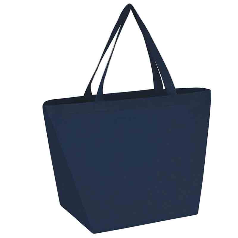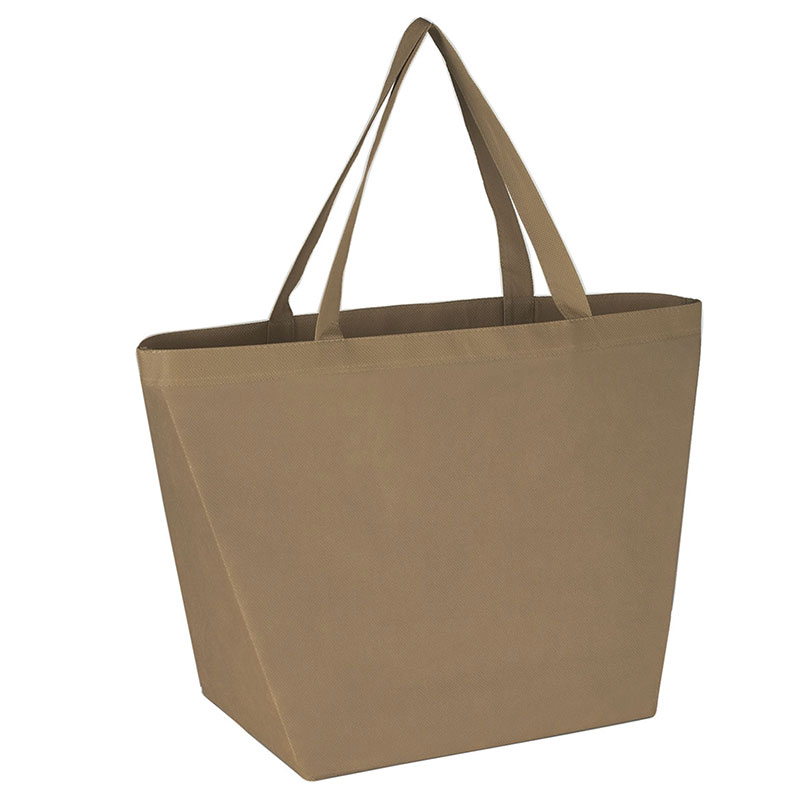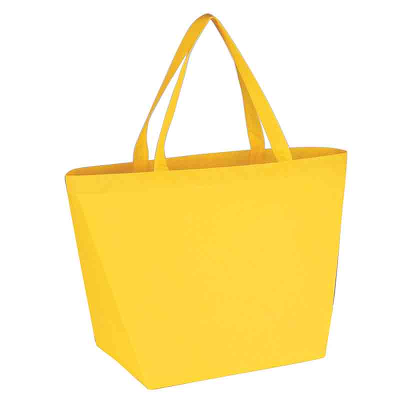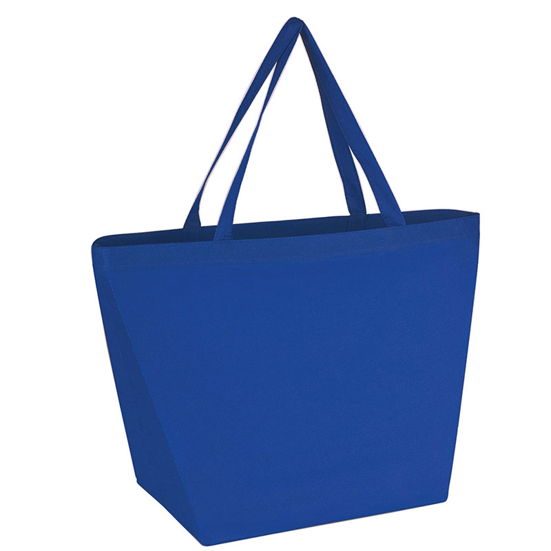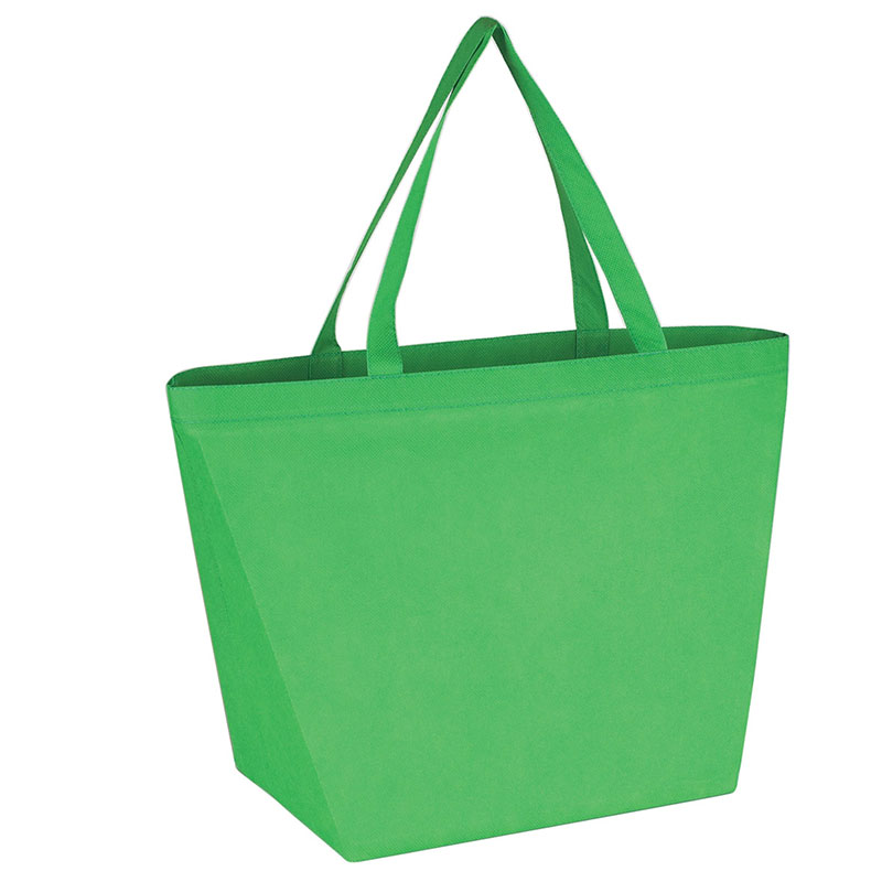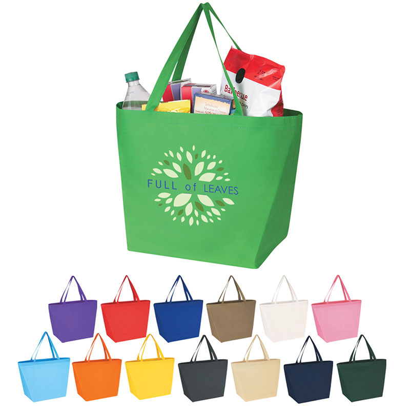 For a tighter budget, this 80 gram non-woven style fits the bill. Coated water resistant polypropylene. Recyclable, reusable, and hand washable. 20" handles, 8" gusset. Size: 13" x 20". Average shipping .15 per piece. Colors may be assorted every 50 pcs. Maximum imprint area 10" x 8". Set Up: $48