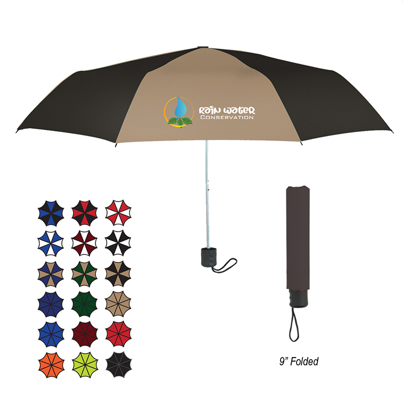 Features matching sleeve, metal shaft, and solid or combo colors. Larger sizes and styles available, please inquire. Size: 42". Average shipping .35 per piece. Colors may be assorted every 25 pcs. Maximum imprint area 7" x 4". Set Up: $48