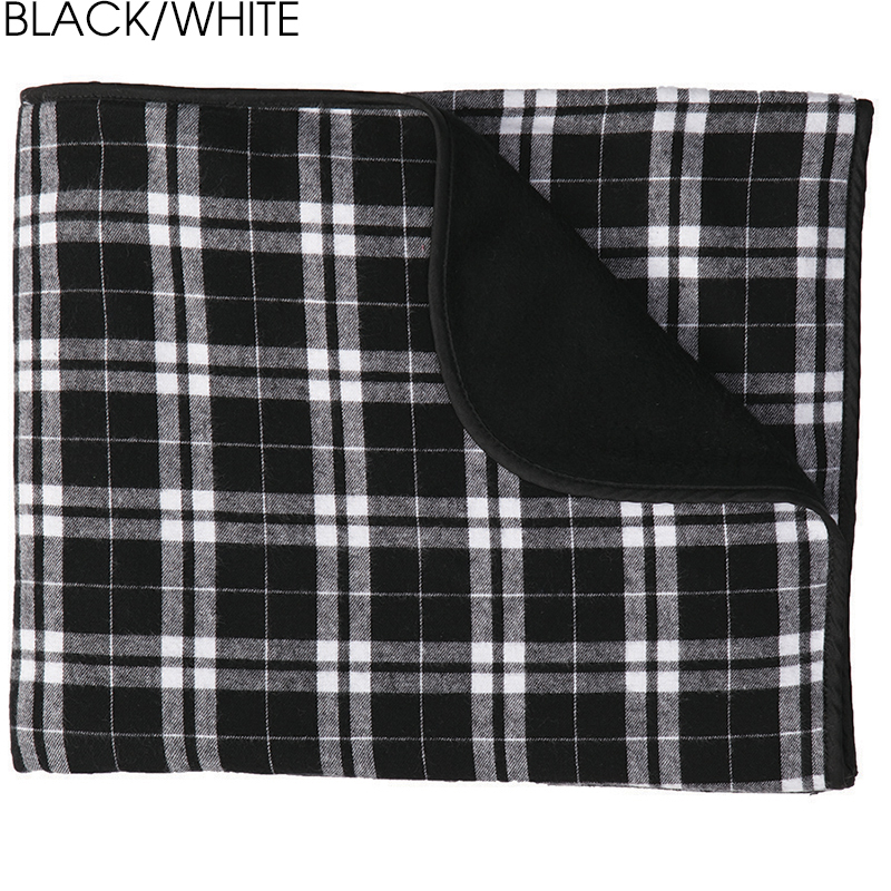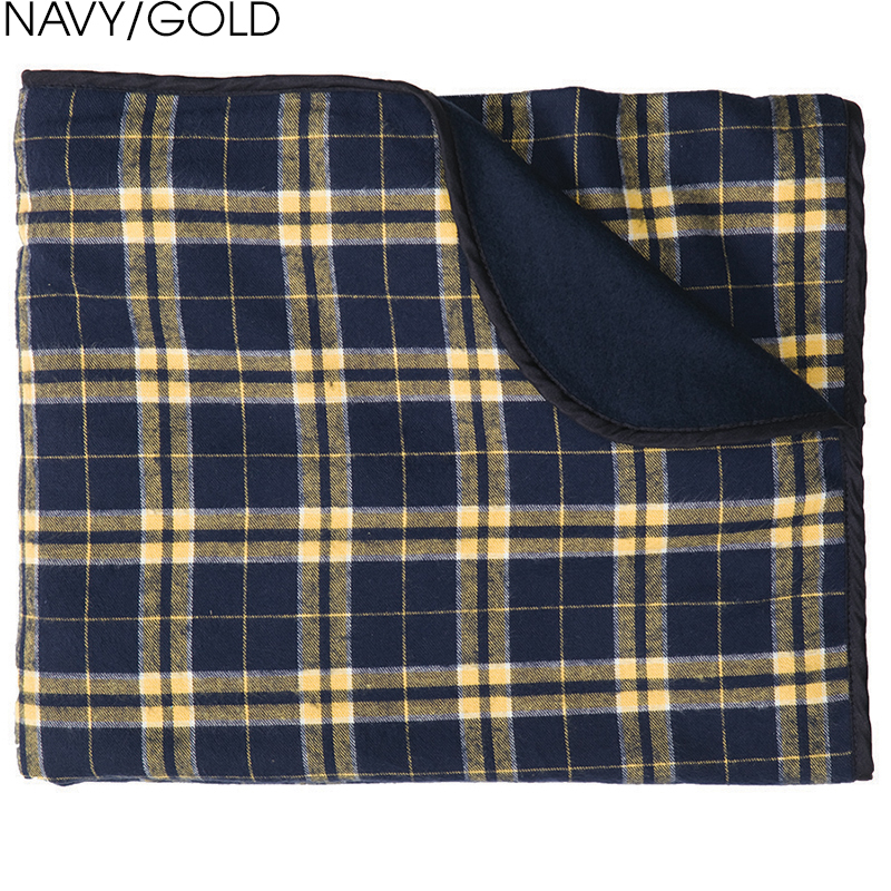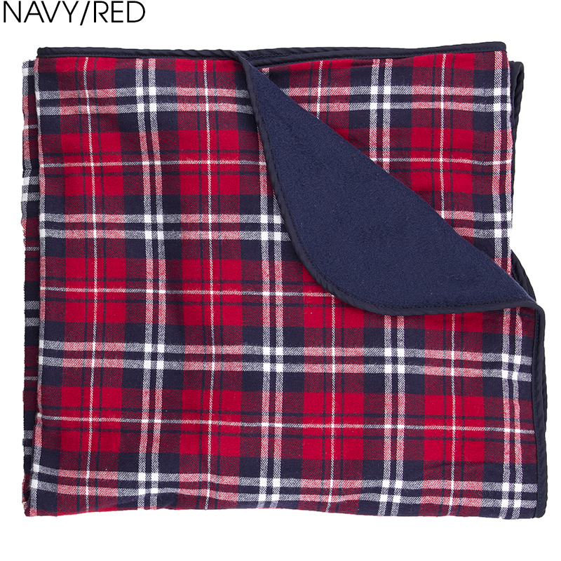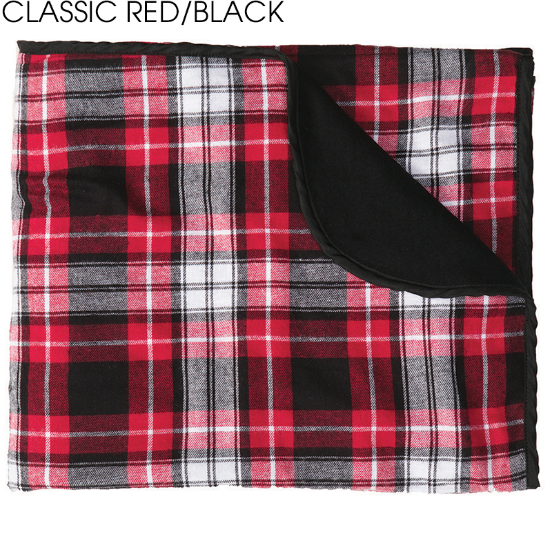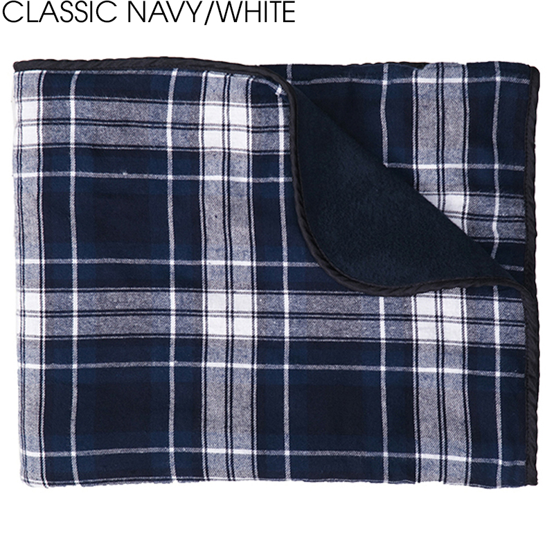 OK, flannel is the single greatest article of clothing ever to be invented by mankind. So how about wrapping yourself up in it as a blanket? Cozy up on a bed, at a picnic, on a boat or wherever you need a little snuggle! Super soft and cozy 4.5 oz., 100% double-brushed cotton flannel with durable 60/40 cotton/polyester fleece backing and bound and finished edges. Size: 50" x 60". Average shipping 2.00 per piece. Colors may be assorted every 12 pcs. Maximum imprint area 12" x 12". Set Up: $38