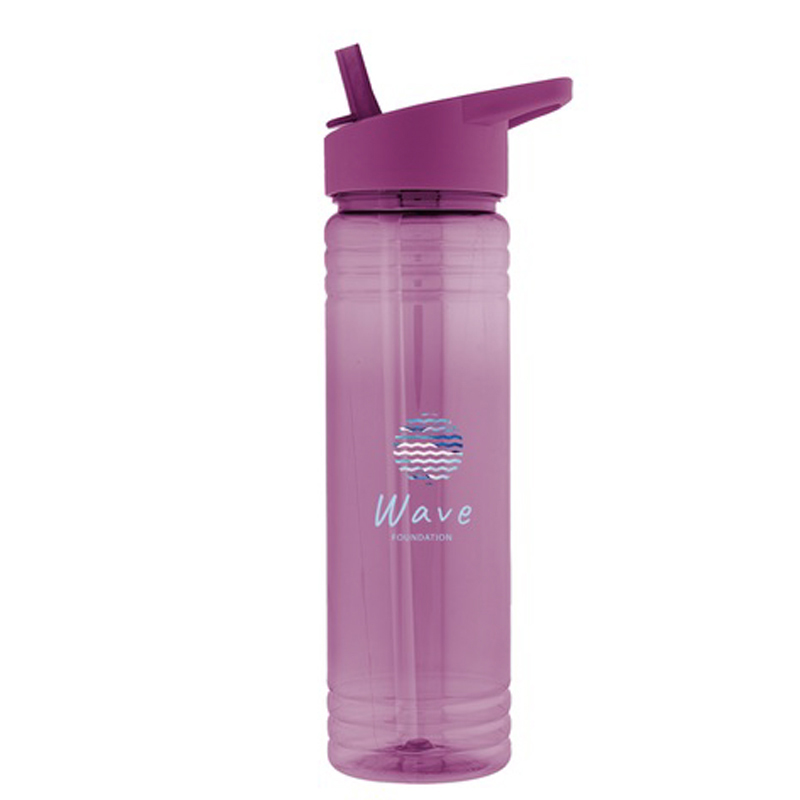 *NEW* Made from post consumer recycled water bottles. Screw on, spill-resistant sip top lid with two tone flip up straw. Easy carry handle. Slim design. Size: 24 oz. Average shipping .50 per piece. Colors may be assorted every 25 pcs. Maximum imprint area 5” x 3” wraparound. Set Up: $38