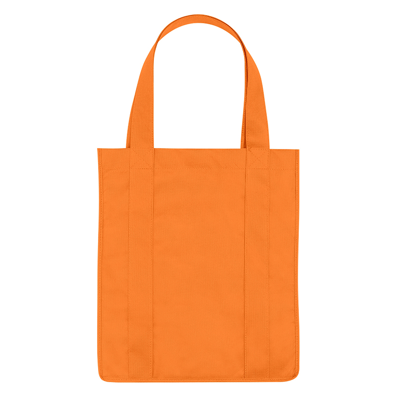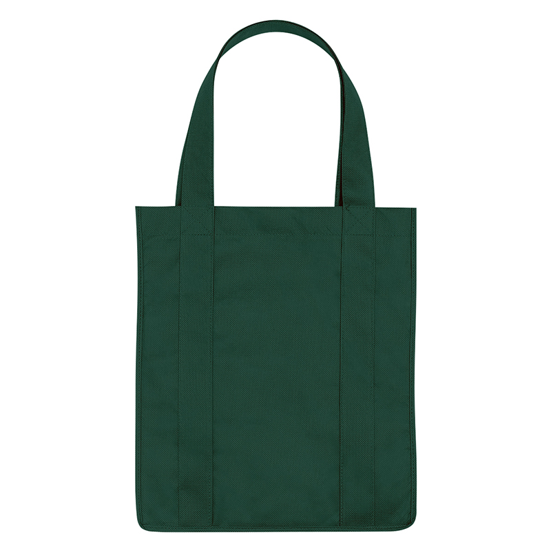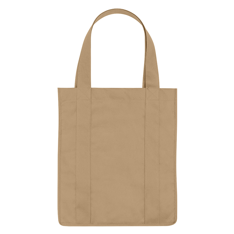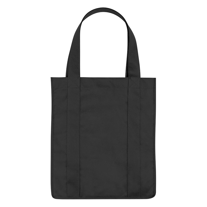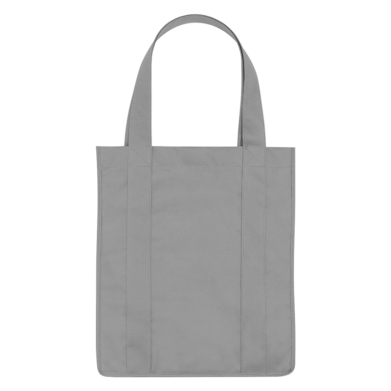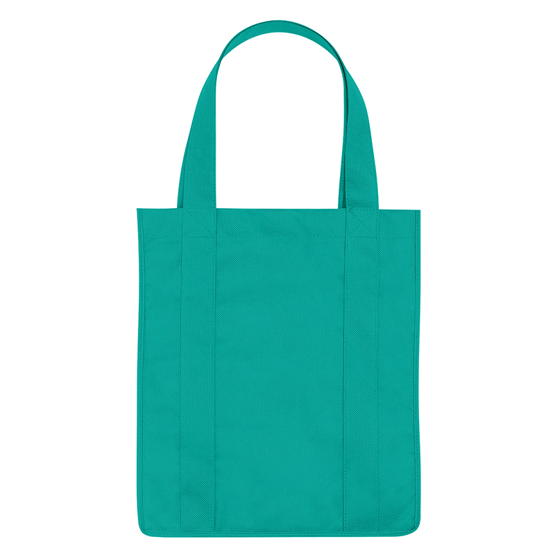 Recyclable tote bag with reinforced 20" handles. Made of extra strong, 90 gram, non-woven, coated waterresistant polypropylene. Reusable and hand washable. Great for grocery stores, markets, book stores, etc. Super roomy, 10" gusset with matching covered bottom insert! Size: 13" x 15". Average shipping .40 per piece. Colors may be assorted every 50 pcs. Maximum imprint area 5" x 10". Set Up: $48