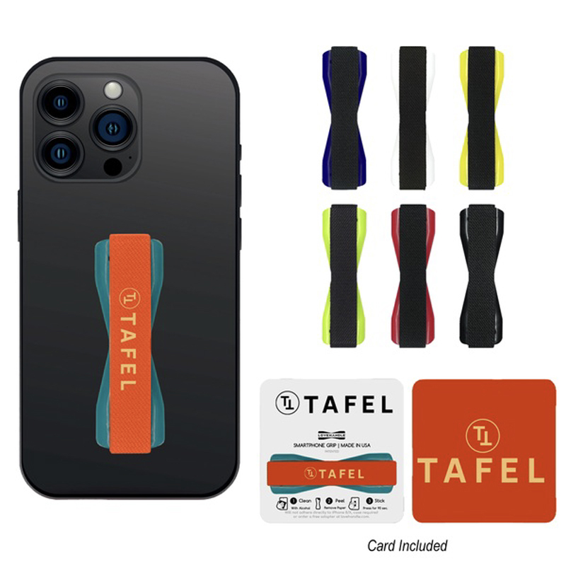 *NEW* Compatible with all devices, adheres to the back a a phone with strong adhesive. Elastic band comfortable and secure, compliments any device without altering its aesthetics. Display card included! Made In USA. Size: 2.5" x 1". Average shipping .23 per piece. Colors may be assorted every 50 pcs. Maximum imprint area .75" x .5". Set Up: $36