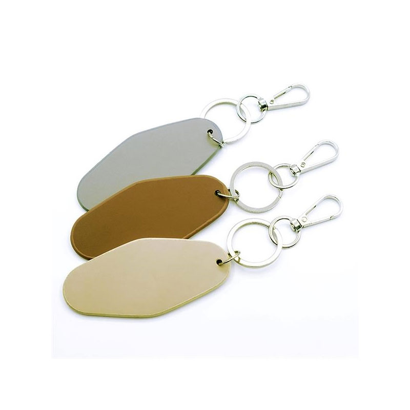 *NEW* Your logo tastefully debossed into this vintage style motel leatherette key fob. Size: 3.5“ x 1.6“. Average shipping .40 per piece. Colors may be assorted every 100 pcs. Maximum imprint area 2” x 1”. Set Up: $38