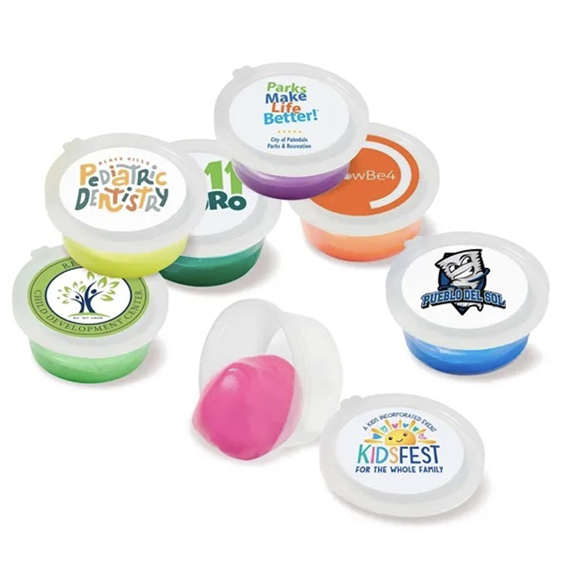 *NEW* Scented hand putty you can bounce, stretch, squish and squeeze. Excellent therapeutic qualities and visual stress reduction properties. Includes your full color imprint on lid. Comes in assorted colors. If a specific color is needed, additional charges will apply. Size: 2.625" x .75". Average shipping .15 per piece. Colors may be assorted every 100 pcs. Maximum imprint area 2" x 2". Set Up: $48