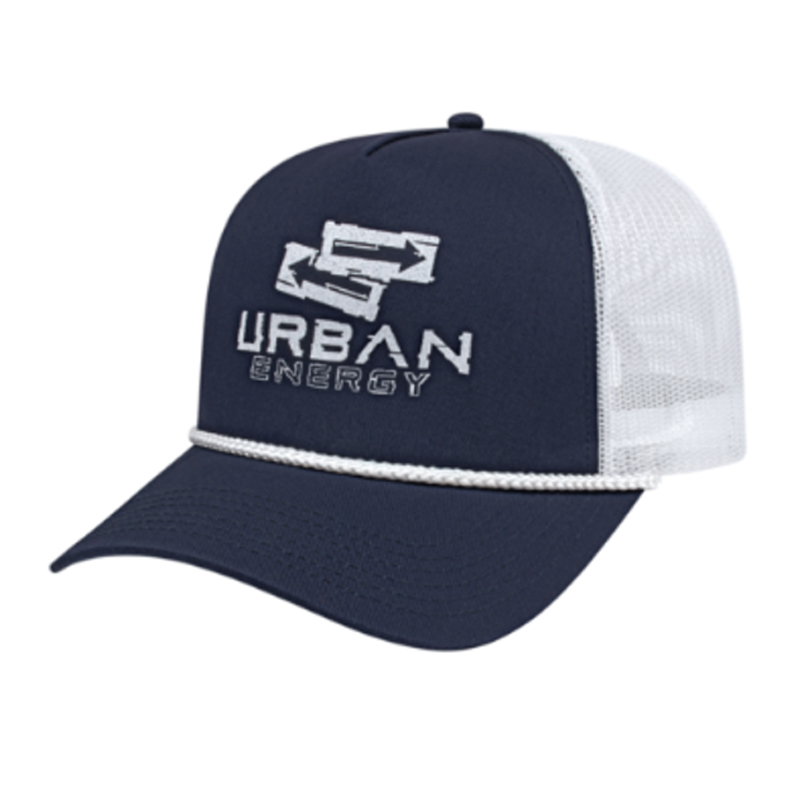 The Value Rope Cap is high profile five panel structured cap with a modified flat visor featuring a poly/cotton blend with trucker mesh, braided rope accent, and adjustable plastic snap tab closure. Price includes 10k stitches of flat embroidery on front location. Size: one size Average shipping .50 per piece. Colors may be assorted every 24 pcs. Maximum imprint area 4” x 2". Set Up: none