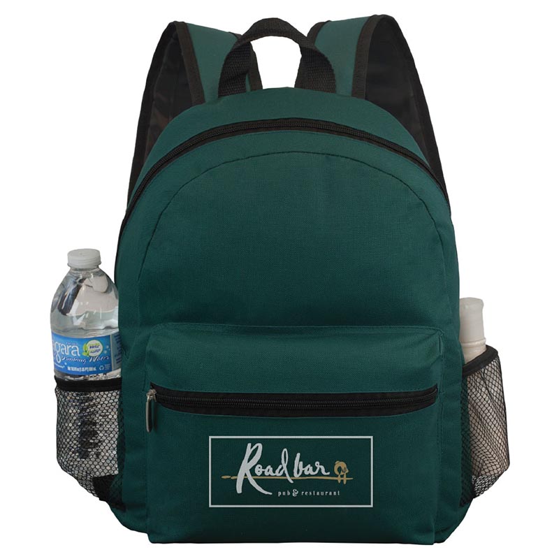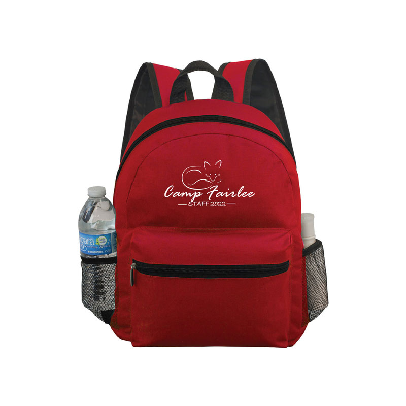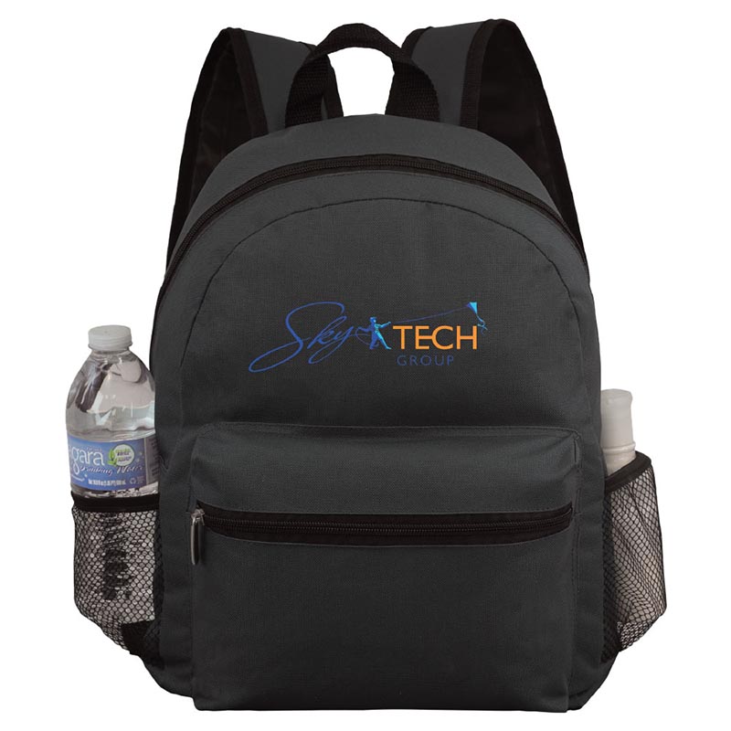 *NEW* A timeless classic, features front zipper pocket with two convenient side mesh pockets. Padded, adjustable shoulder straps. Large main pocket. Made of 600D Polyester. Size: 11.5“ x 16“. Average shipping 1.25 per piece. Colors may be assorted every 50 pcs. Maximum imprint area 6" x 4". Set Up: $48